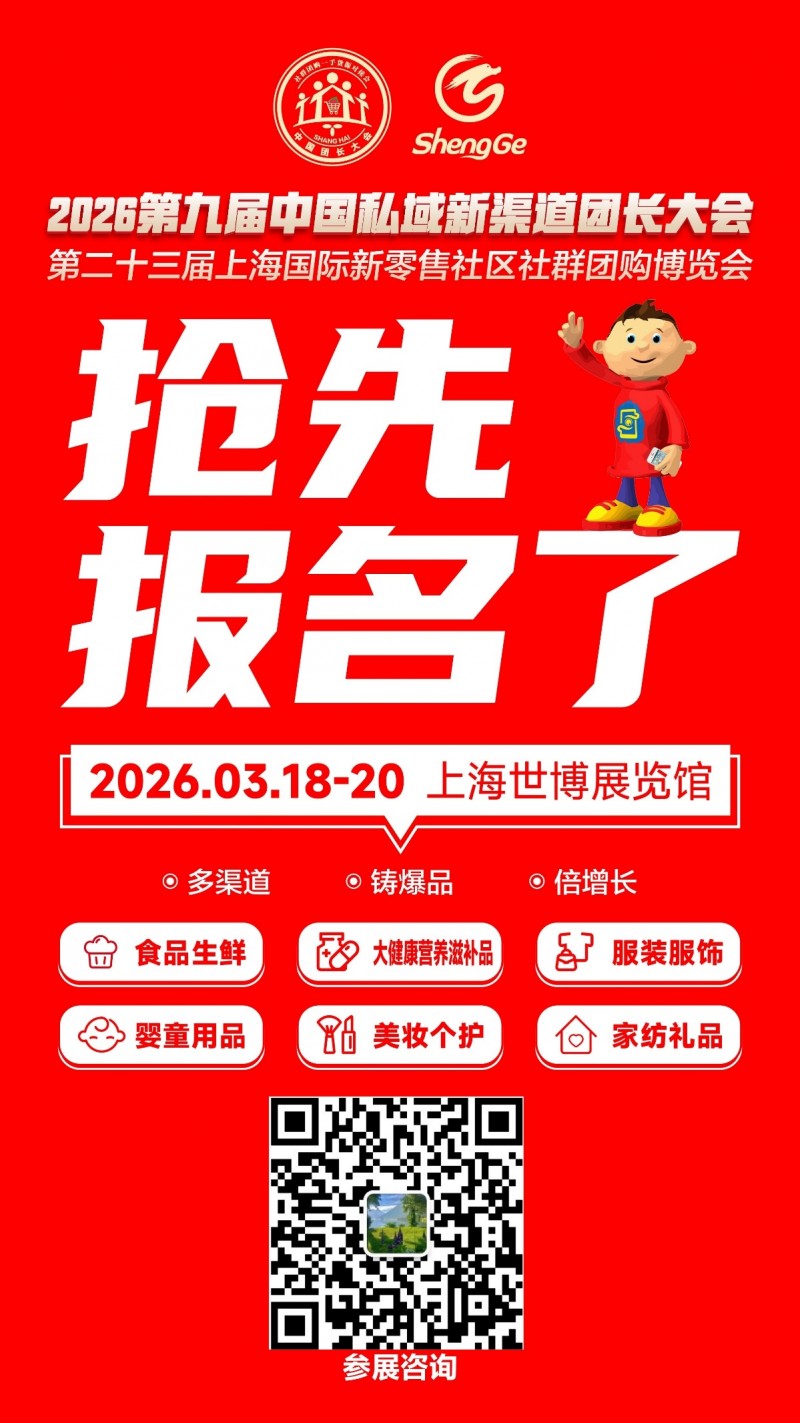 第九屆中國私域新渠道團長大會暨第二十三屆上海國際新零售社區社群團購博覽會將于2026年12月18-20日在上海世博展覽館繼續舉辦。