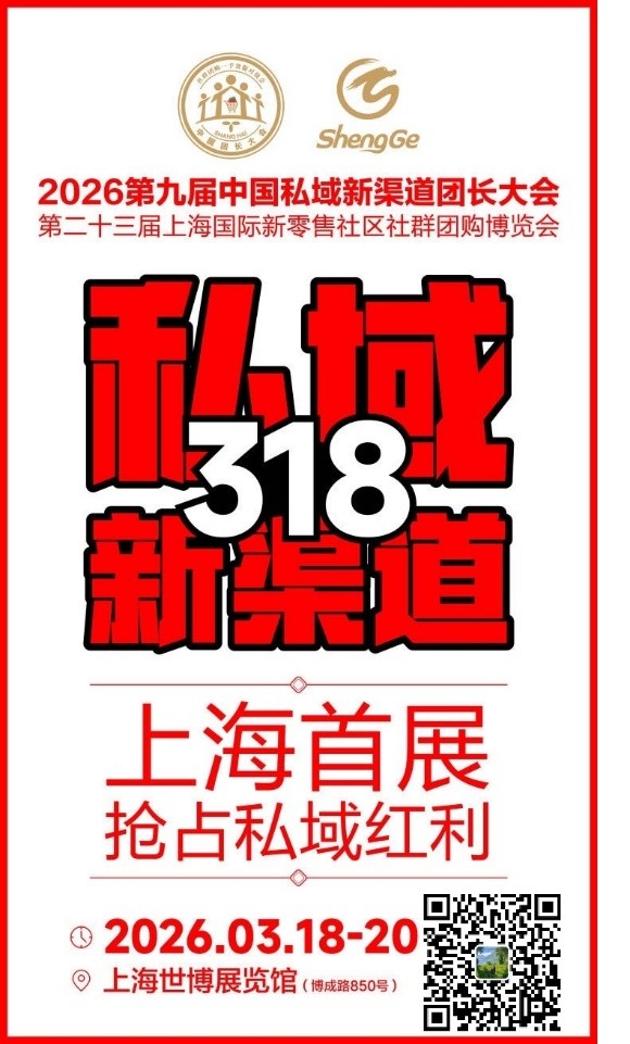 好消息!2026 第九屆中國私域新渠道團長大會3月18日上海世博展覽館隆重舉辦!